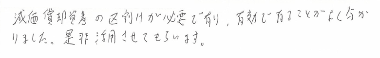 減価償却資産の区分けが必要で有り、有効で有ることがよく分かりました。是非活用させてもらいます。