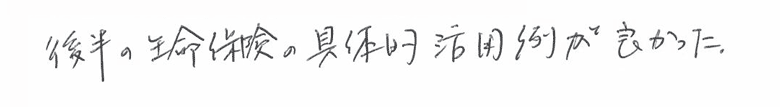 後半の生命保険の具体的活用例が良かった。