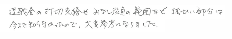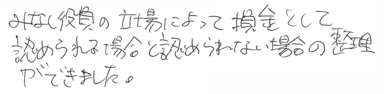 個別案件の疑問が解決出来て助かりました。みなし役員の考え方が良く理解出来た。